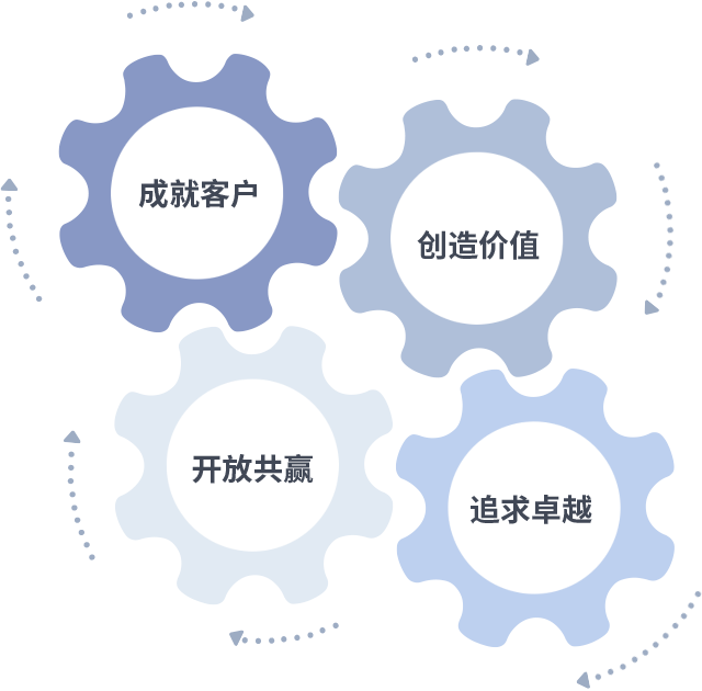 成就客户是一切决策的出发点,创造价值是衡量所有工作的标准,追求卓越是j9九游会真人第一品牌做事做人的态度,开放共赢是j9九游会真人第一品牌的格局也是最终的结果。价值观的齿轮环环相扣,推动着组织里的每个人不断向前。
